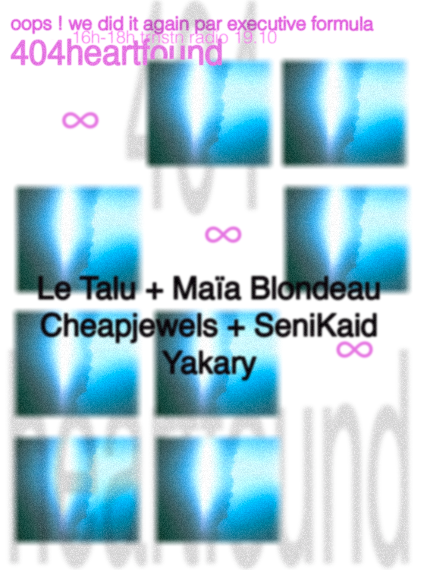 Pour l'emission annuelle d'Executive Formula, Korkki invite quatre figures actives de la scène émergente bruxelloise : le Talu, Cheapjewels, Maïa blondeau et SeniKaid <3 Entre rap digital, hyperpop et live électronique, iels explorent un son à la fois frontal, émo et profondément collectif. Ensemble, iels construisent un moment brut et collectif, où les frontières entre performance, mix et live explosent.